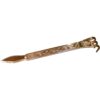 Der Griff ist aus gedrechseltem Buchenholz und liegt wunderbar in der Hand. Die Metallkanten bleiben lange scharf und können bei Bedarf leicht nachgeschärft werden.