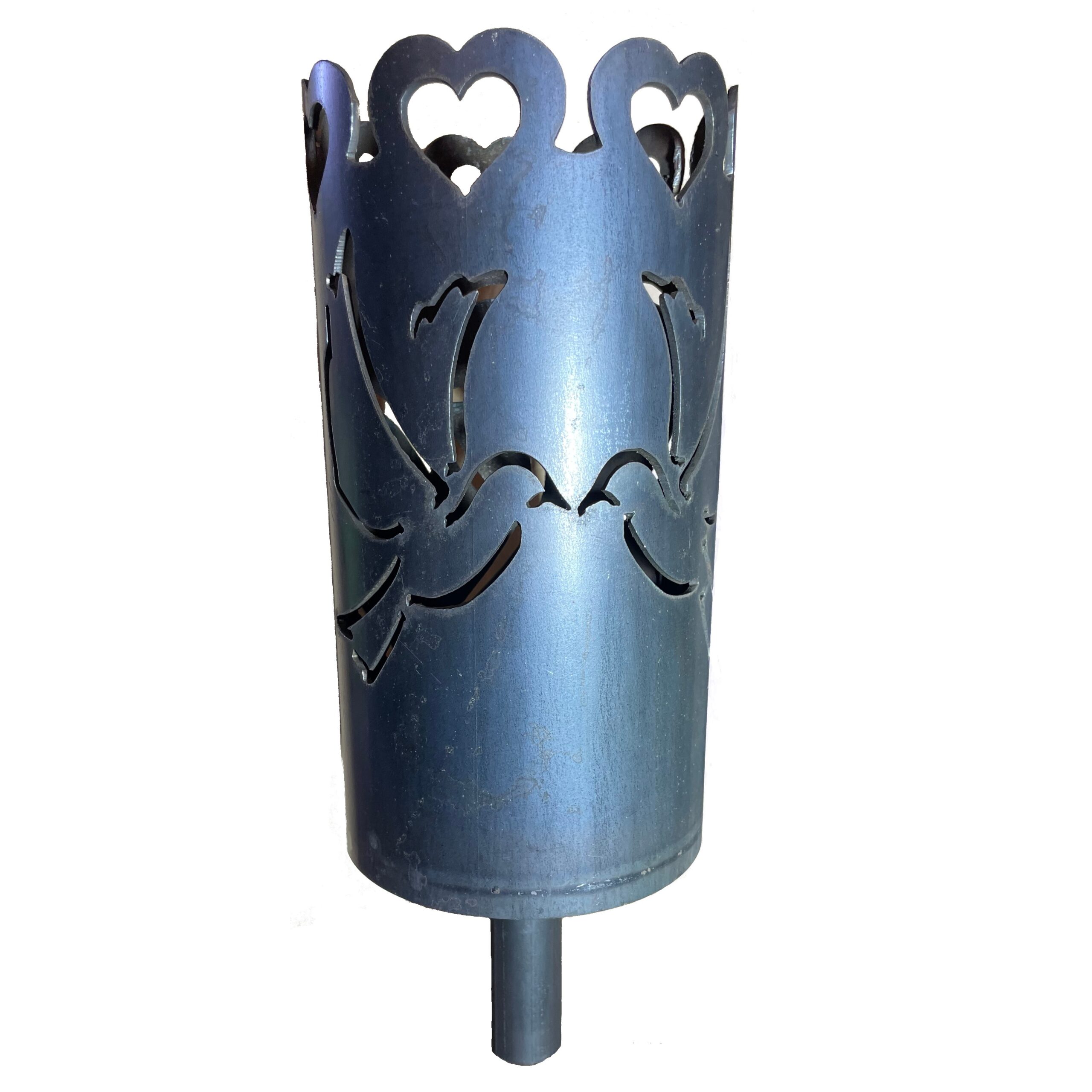 Die Fackeln werden von einem Metallbaukünstler aus Brandenburg hergestellt. Wegen der Herstellung in Handarbeit (kein Lasern oder computergesteuertes Zuschneiden) kann es zu geringfügigen Abweichungen in Gewicht und Abmessungen sowie der Anordnung und Art der Motive kommen. Die Fackeln sind nicht aus Blech, sondern aus massivem Eisen. Sie sind blank und schon bei der Lieferung kann sich „Edelrost“ auf der Oberfläche gebildet haben. Nach einiger Zeit entwickeln die Fackeln in Kombination mit den Flammen eine entsprechend schöne Gebrauchspatina. Die große Materialstärke gewährleistet eine hohe Qualität und jahrelange Lebensdauer.