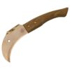 Der Griff ist aus gedrechseltem Buchenholz und liegt wunderbar in der Hand. Die Metallkanten bleiben lange scharf und können bei Bedarf leicht nachgeschärft werden.